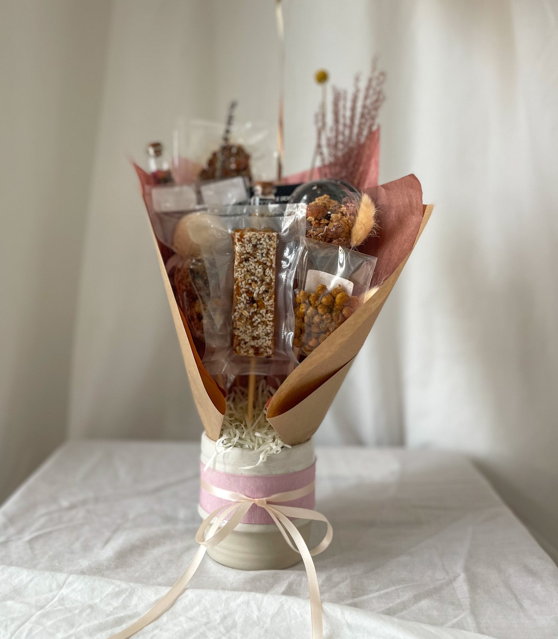 You can’t go wrong with our thoughtful, made to order Mother's Day Gifts - Hampers For Mum and Food Bouquet Range! Our edible arrangements are made of healthy foods and homemade vegan snacks with no added sugar, paired with carefully selected dried florals to send a unique gift arrangement, when you can’t be there in person.